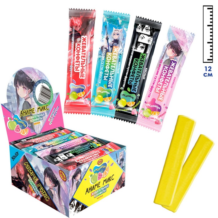 Жевательная конфета Кислошок Аниме микс со вкусом тутти-фрутти (Россия) 10г0,00 руб. за штуку (в упак. 50 шт.) |